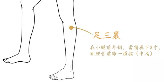 足三里穴屬胃經合穴,經常按摩足三里可加強胃腸蠕動,調節脾胃功能,改善人整體的免疫能力。按摩時可用拇指直接按揉,按摩不受地點、時間限制,貴在長期堅持。