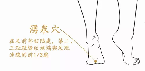 涌泉穴位對于滋腎陰、補腎水意義重大,尤其適合腎虛型腰痛者。將拇指放在該穴上,用較強的力搓揉20~30次,兩腳都要按摩,晨起和睡前按摩,養腎效果較好。