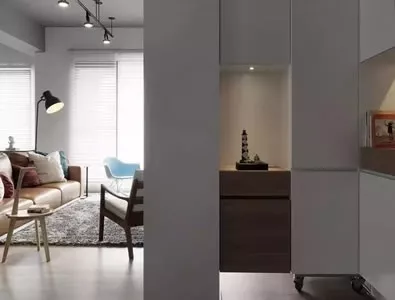 若在設計之時就發現大門對窗,那么可運用L型鞋柜制造出一個玄關區域,這樣不僅化解穿堂煞氣,還能增加收納空間。