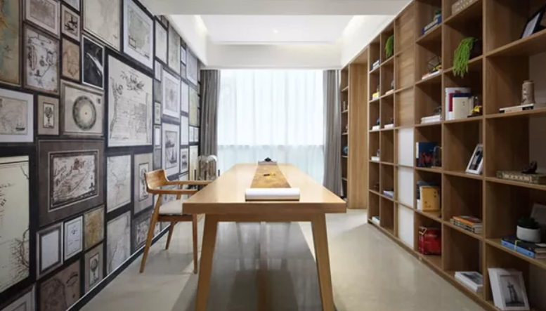 - 另外,依据“左青龙、右白虎”的规则来看的话,主人是男性的话,书柜摆放放置最好在左方的墙侧,而书桌的右方放置客椅,利于交流与沟通。